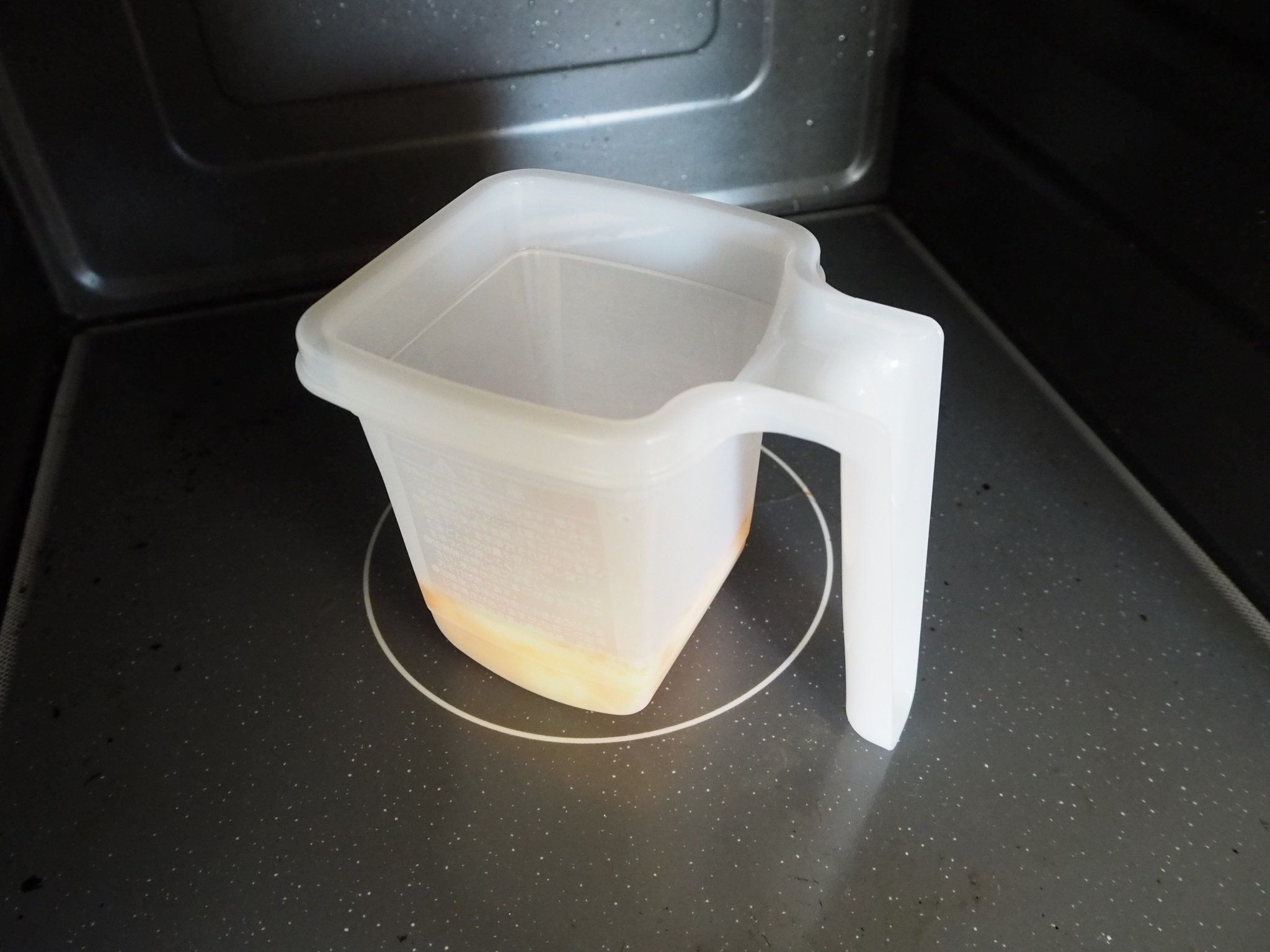 混ぜたら500Wで40秒電子レンジで加熱。
