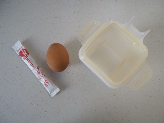 容器の中で卵1個と水を大さじ1入れて混ぜます。
