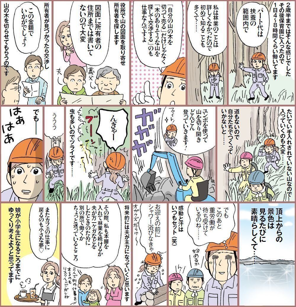 Q:今後、家業で夫と並んで稼ぐか、 あるいは夫がケガや病気などで 働けなくなったときのために、カフェで パートするなどして林業以外の収入源を 確保するのがいいのか、迷っています。