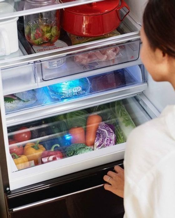 AQUAのDelieシリーズは、チルドルームを横約47cm×奥行き約29cmのワイド幅に。幅広パックが2つ横に並べて入る大容量。乾燥が気になるサラダや刺身などを盛り付けてインしておけば、塾帰りの子ども、残業帰りのパパと、バラバラの食事時間でもそのたび盛り付ける必要なし! パサつきや変色もしっかり抑えてくれるから、 鮮度もそのままに笑顔でサーブできます。