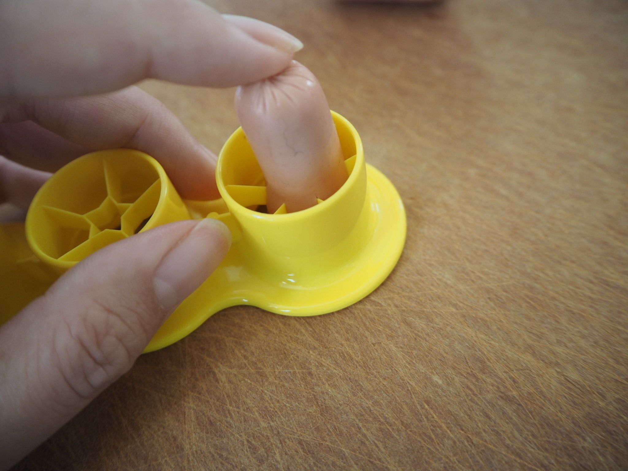 使い方も簡単!タコは黄色の型で足をカットして、赤の型で顔を押してあげるだけ!