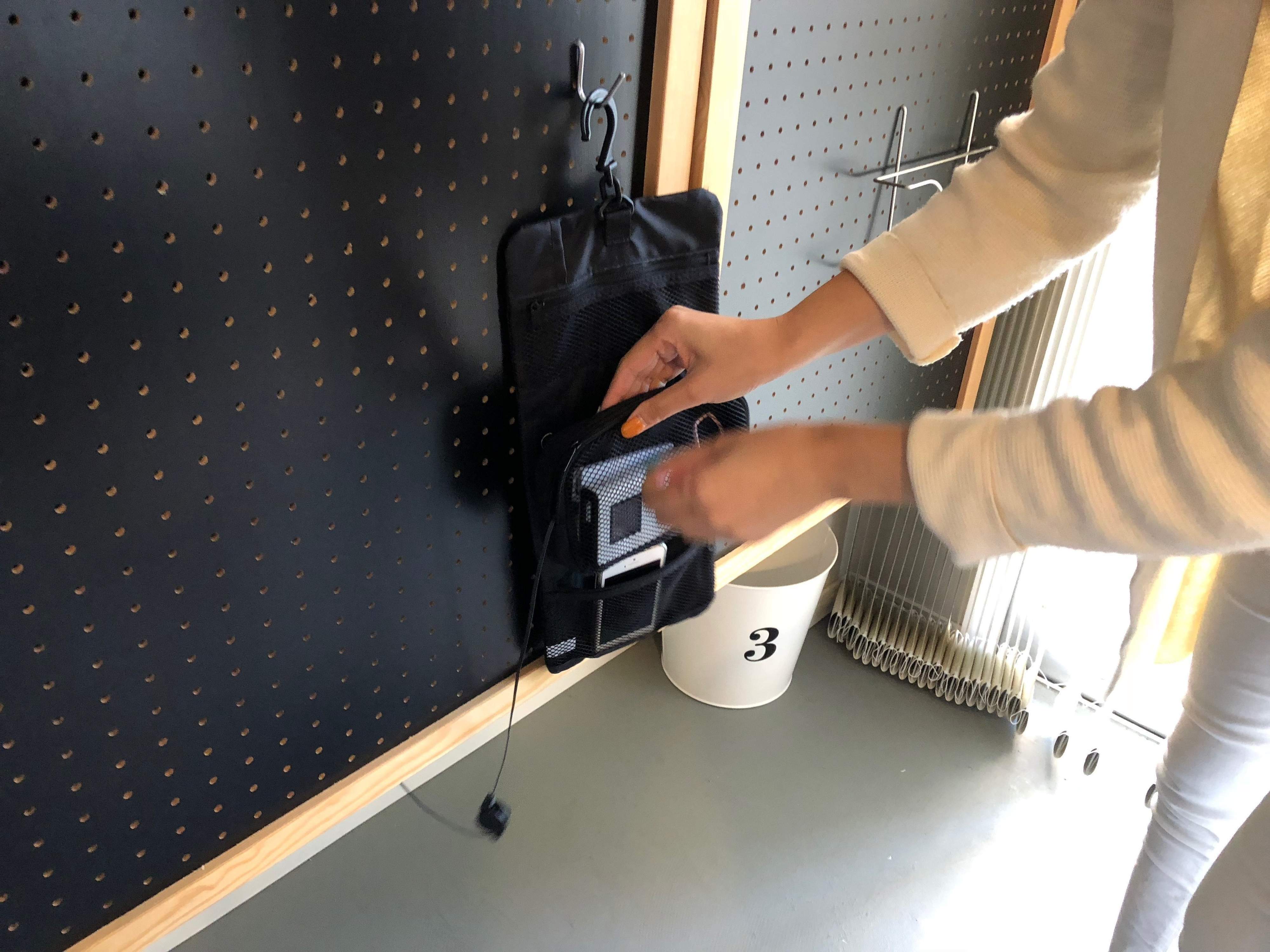 帰ってきたらまたポーチを定位置に戻して充電!リビングやデスクの横にかけて使用してはいかがでしょうか?