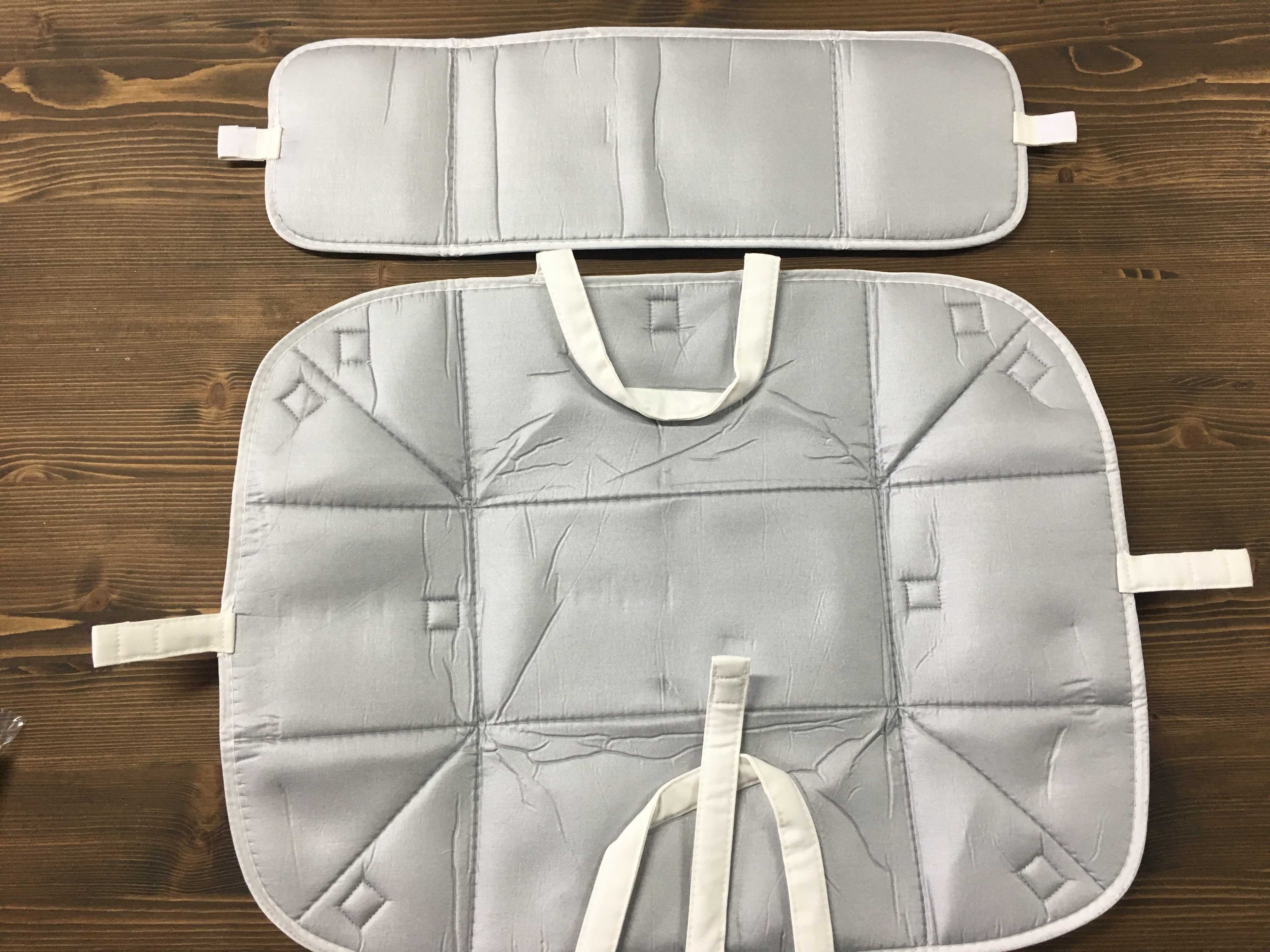 素材は綿素材ですが、シルバーの部分はアルミコーティングされています。さらに中わたも全体的に薄く入っているので柔らかくふわふわした質感です。