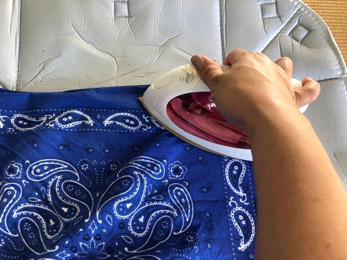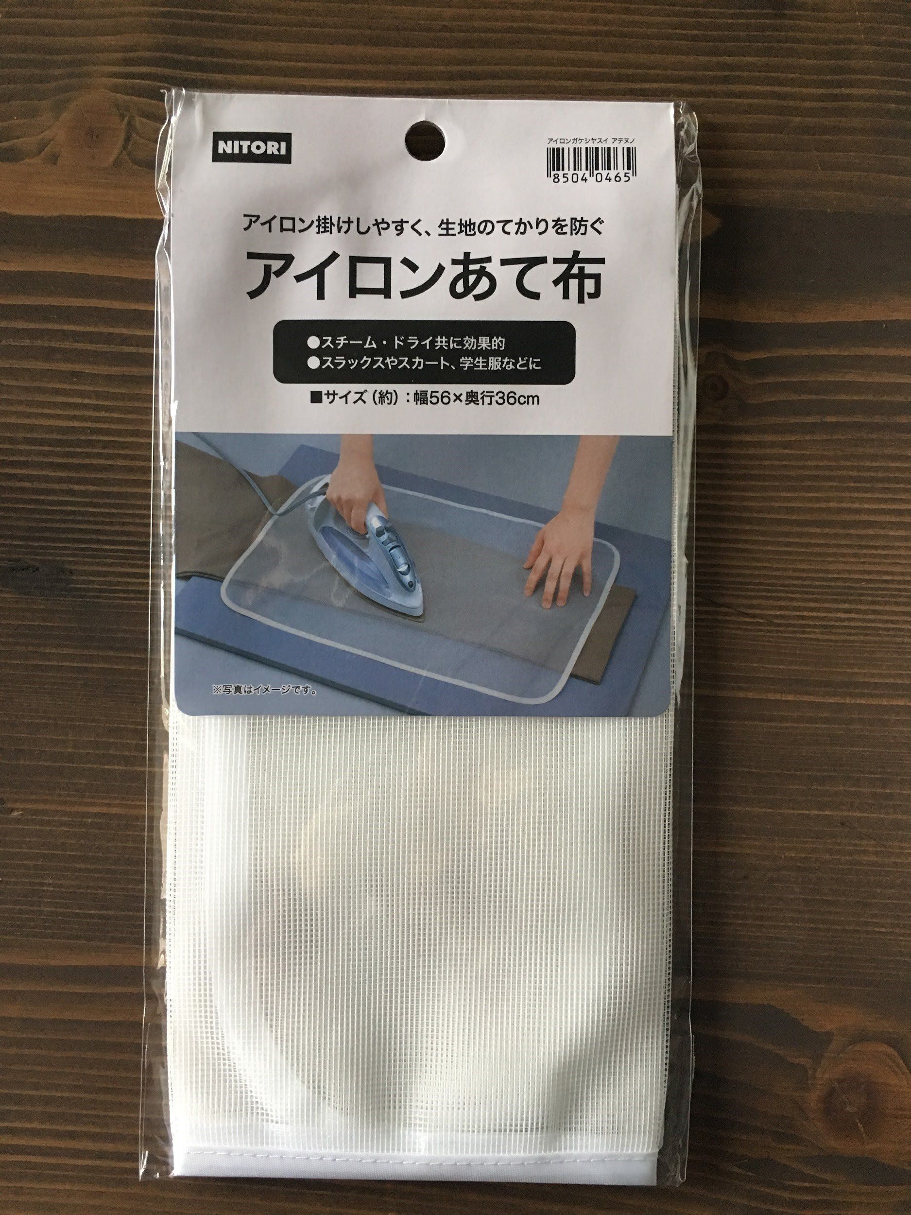 今回紹介する商品「アイロン収納マット」¥2490(税込)。パッケージを取って広げるとアイロンマットになります。この時のサイズは65センチ×60センチで、一般的なバンダナが全部入るくらいの大きさになります。