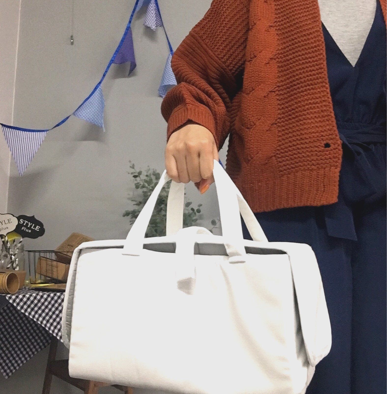 収納バッグ時のサイズは33センチ×18センチ。高さも18センチあるので、これより一回り小さなアイロンなら収納可能!2kgまでならほかのグッズも入れられます。細長い形のマットはフタになるので、こちらもマジックテープで留めます。
