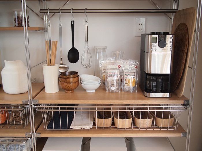 普段使いのお茶碗やお椀は誰でも手に取れるような場所に。カトラリーも子供が自分で取り出せそうな場所に置いてあるというのがポイント高しです!誰が見ても使いやすい、初めて見た人でも用途を想像できる、素敵な収納術です。