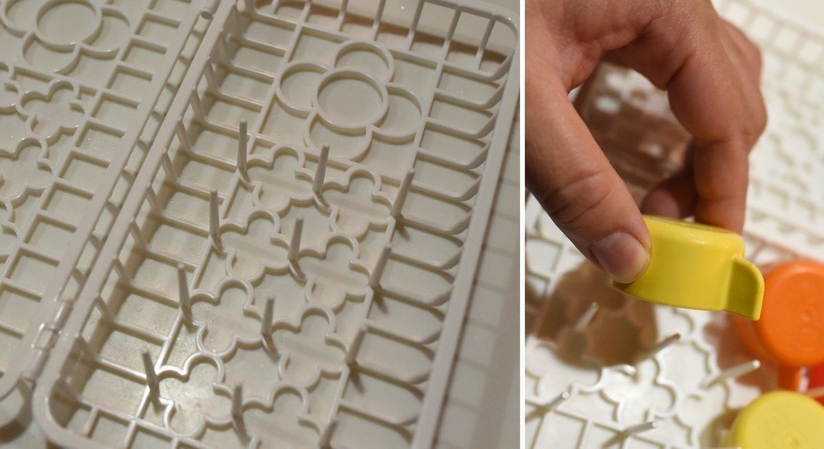 バスケットを開くと、片方の面には、12本の棒が出ています。この棒のおかげで、小物が中で片方に寄ってしまったり、水流で裏返ったりしてしまうのを防いでくれるすぐれものなんです。棒の役割を理解した上で、小物を入れると、よりきれいに洗うことができるでしょう。