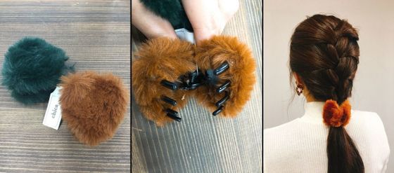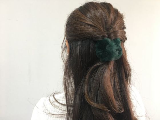 次に紹介するのは最近種類が豊富になっているポニーフック!髪の毛をヘアゴムでまとめ、そこへゴールドの金具部分を差し込むだけ。ゴムが伸びたり切れてもフックはずっと使えますし、ファーのような大ぶりの物でもOK!しかも、きちんと付けたい位置に付けられるので1つ持っていると華やかなヘアスタイルも楽しめます。
