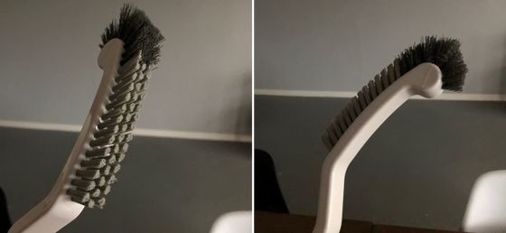 先端のブラシが写真のようにとても細くなっているので、縁裏のすみずみにまでブラシが届くのです。