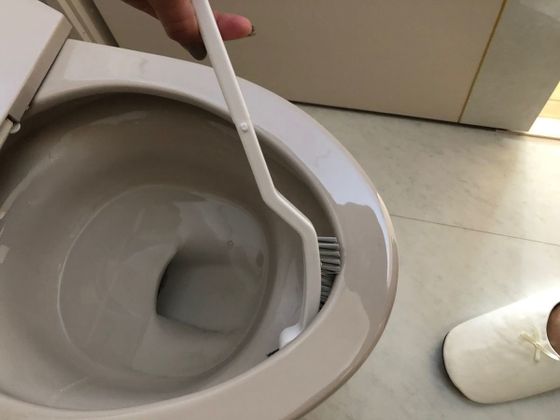 KEYUCAの「スリムトイレブラシ」(¥993・税込)は、場所を取らないスリムなボディーと隙間まできっちり磨いてくれるブラシが特徴。縁の内側もすっきり磨けます。その秘密はブラシの形状にあり。