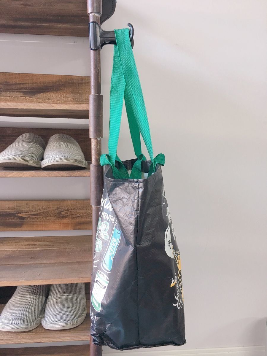 玄関などのちょっとしたスペースにもいいですよ。外出時にエコバッグを持って出掛ける時にも帰ってきてからも同じ場所に。挟むだけだから、子どもの成長に合わせて高さを変えたり、必要無くなれば他の場所に移動も楽々。1つ持っていると様々な場所で活躍してくれそうです。