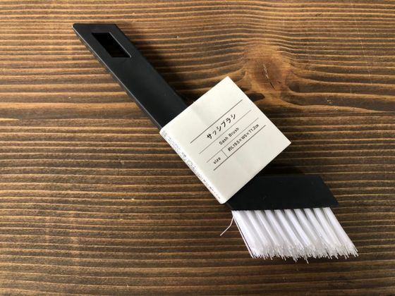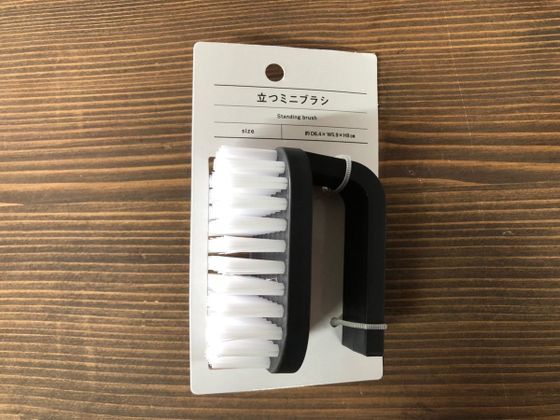 そんなベランダの床掃除にはこの「立つミニブラシ」(価格108円・税込)がオススメです。持ち手が付いているので力が入りやすい。掃き掃除をしたあとにこのブラシでゴシゴシ磨けば、ベランダもすっきりピカピカに。