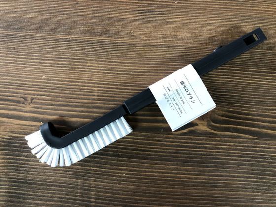 「排水口ブラシ」(価格108円・税込)は、スリムで先端が曲がったデザイン。この形のおかげで通常は届きにくところも掃除がしやすく、しかも柄が伸びる!