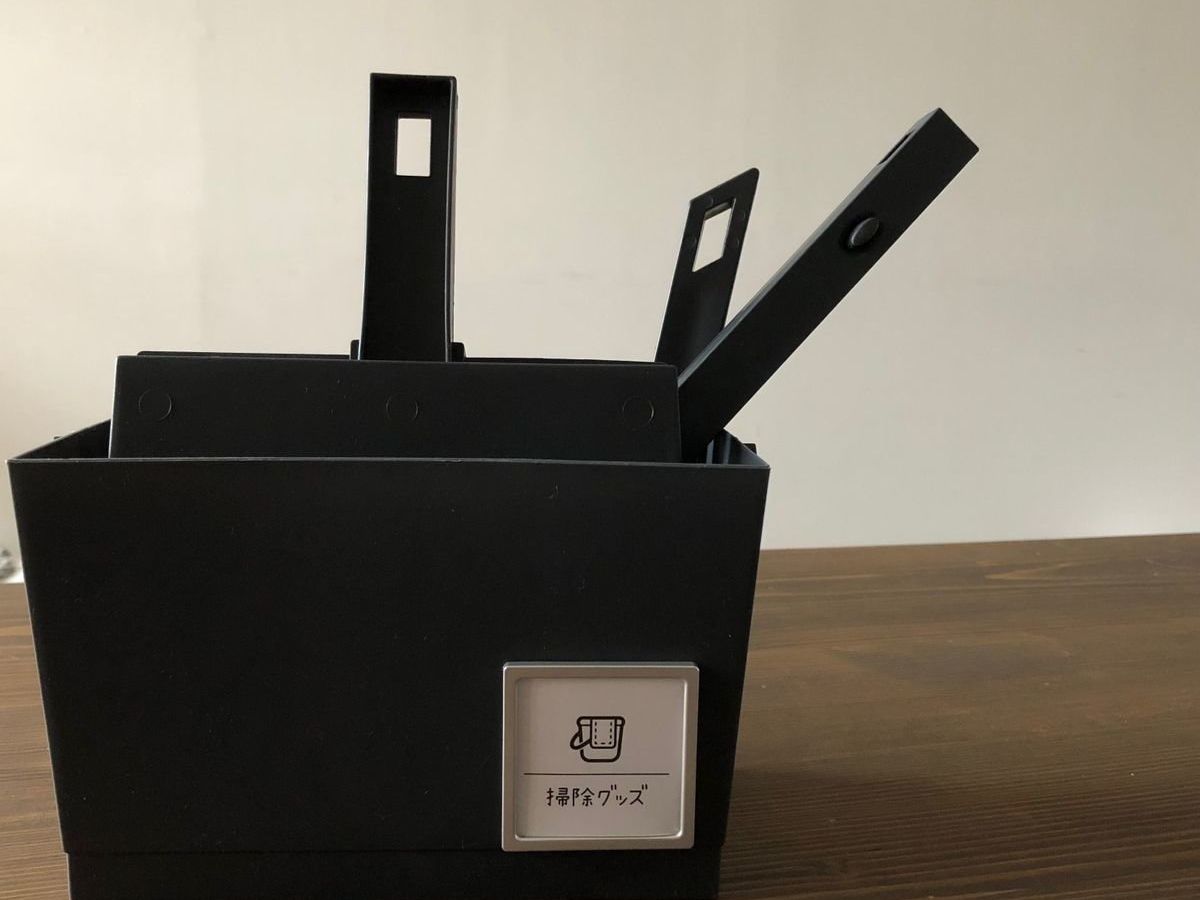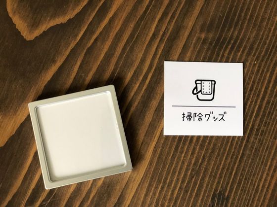 使う人みんながわかるようにラベルがおすすめです。宮成製作所のラベルプレート&ラベリングカードを100均グッズに貼ると高見えしておすすめです(写真はスクエアサイズ)。