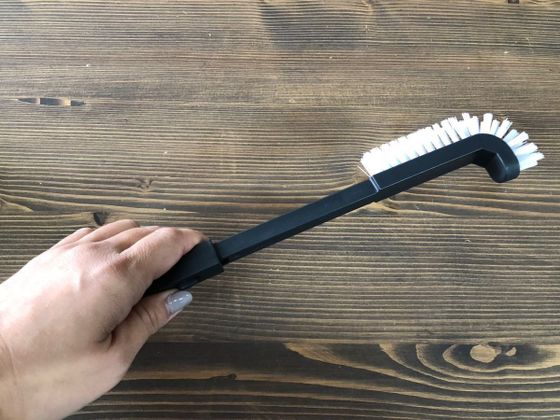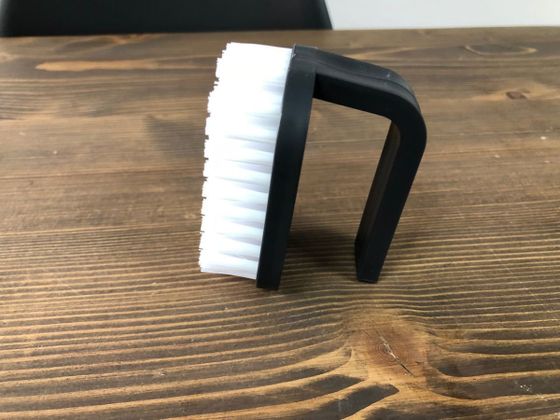 また、毛は硬めの歯ブラシくらいの硬さなので便器に傷がつきにくく、トイレブラシにもできそうです。便器の縁の裏も先の曲がったこのブラシならばきっちり磨けそう。