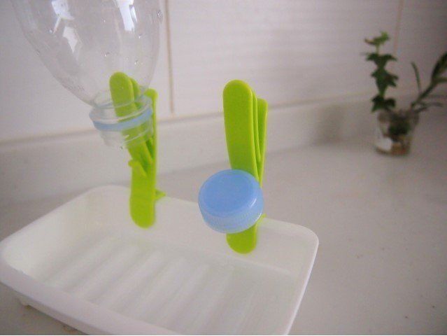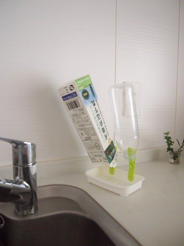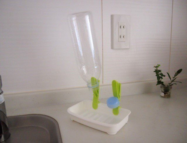 ダイソーの「ペットボトル水切り」108円(税込)を使えば、ペットボトルや牛乳パックなどリサイクルに出す時に洗って乾かして出す、ということがしやすくなります。