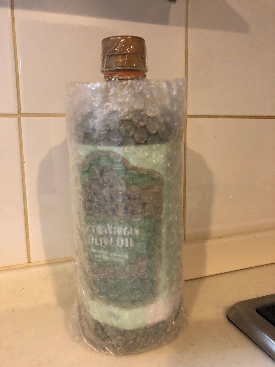 しょうゆ、油、酢、みりん、料理酒など液体の調味料の梱包は、まず容器の口の部分にラップを巻いて輪ゴムで留めます。容器が割れものの場合は、容器のまわりをタオルや緩衝材でくるみます。さらに、ビニール袋へ入れて、段ボールへ入れましょう。