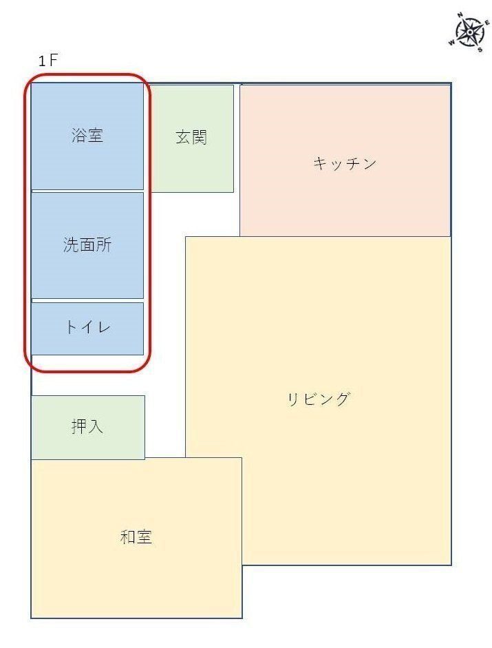 さらに、北から北西にかけて洗面所、トイレと水場が並んでいる。「北西」という方位は一家の主(あるじ)、つまりダンナの運気を左右する方位なのに、そこにまた「水場」のダメージがある。これじゃ、ダンナが家にいられないよね。