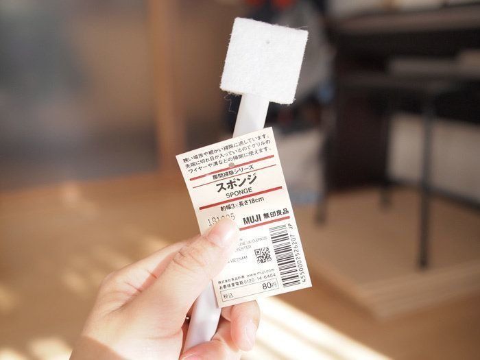 台所のちょっとした溝や、ヌメリが溜まってしまっているような場所にはこちらのスポンジタイプのブラシを使いましょう!こちらも税込80円とロープライスで大変お求めやすい価格なのが魅力。持ち手が太くて長いので力を入れやすいところも利点です。