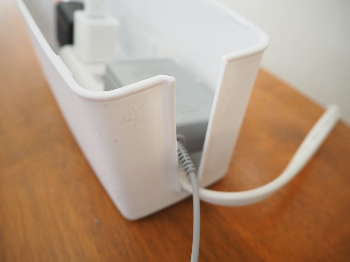 コードは発火の危険性があるのでボックスの中でまとめないでください、という注意書きあり。なので長いまま外に出しています。