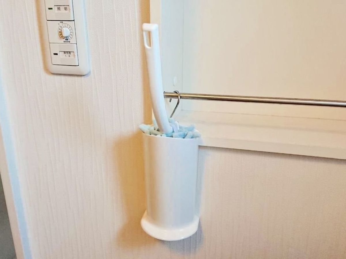 トイレはホコリが溜まりがちな場所。私は嫌なものに蓋をしがちなので、掃除の日は決めずに見える位置にモップを置いて、毎日使うたびについで掃除!流せるトイレブラシの隣で、色味も統一感を出して見た目もすっきり。