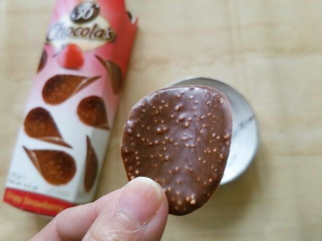 輸入食品も置いているカルディには、お菓子の種類も豊富。MayumiTさんは、子どもがパーティ時に持ち寄った、こちらのクリスプ入りのチョコチップスをリピート買い。チョコがかかっているだけではなく、イチゴ味やオレンジ味のつぶつぶが入っていておいしいそうですよ。