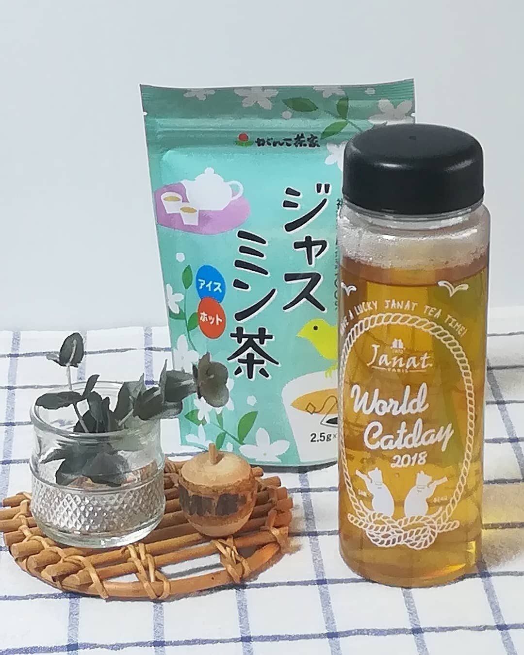 ジャスミン茶をリピート買いしているのはshima*nekoさん。寒い日にはあたたかいジャスミン茶を持って通勤しているそうです。ティーバッグに入っているので、1杯ずつ入れられてとても便利。カルディの「猫の日バッグ」に入っていたかわいいボトルも活躍しています。