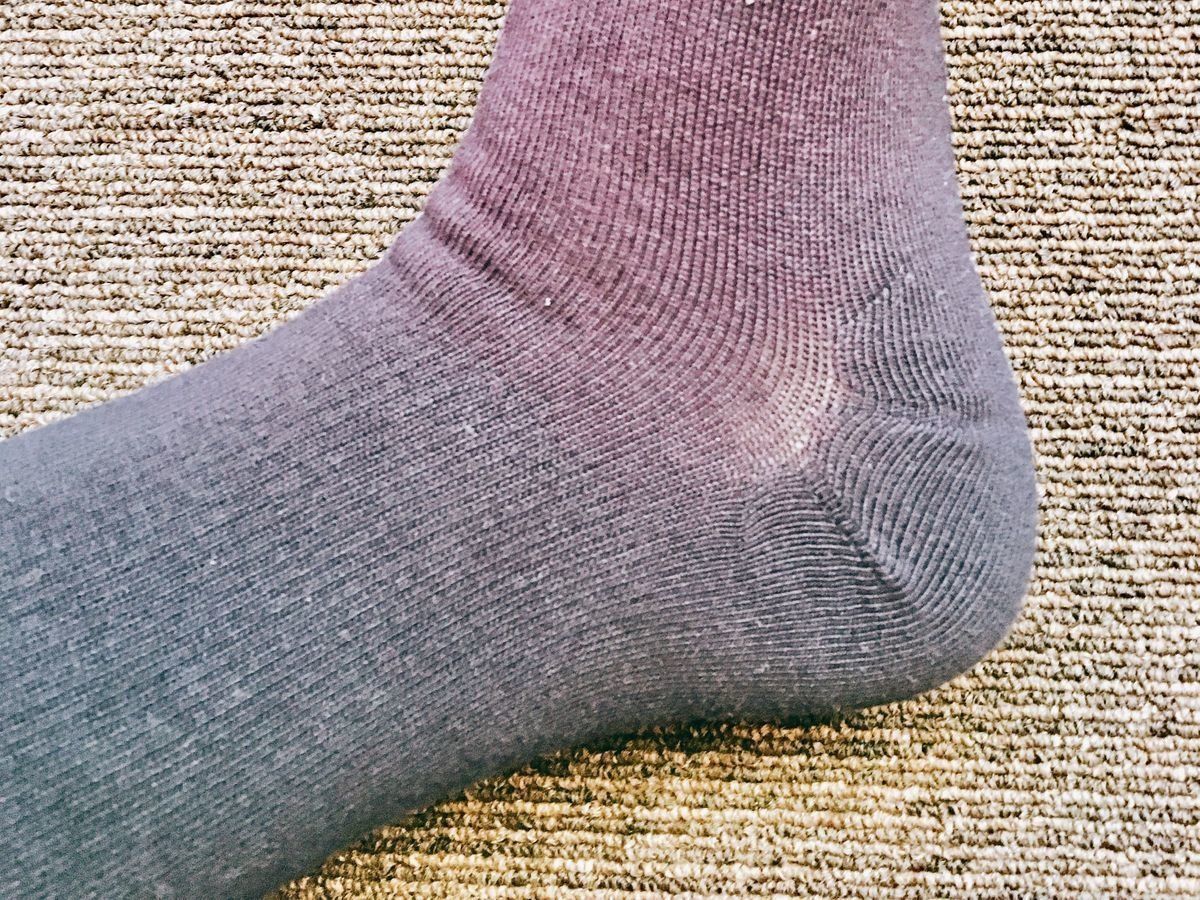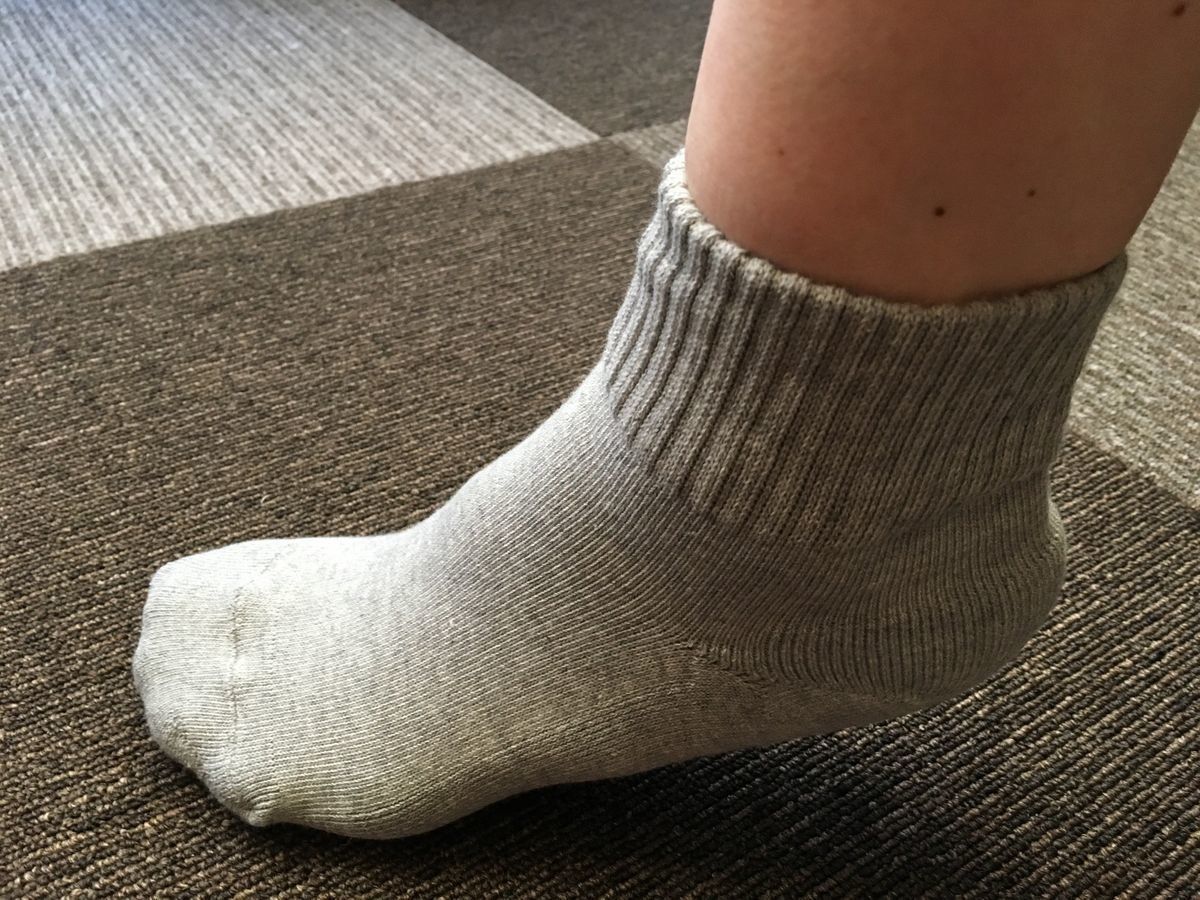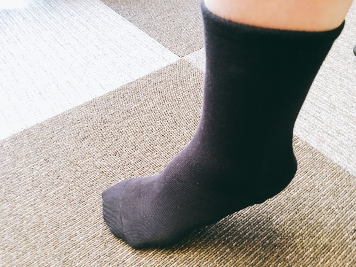 「足なり直角靴下」シリーズのレギュラー丈は初めて履いたのですが、履いてみてビックリ!足の甲の部分がぴたっと吸い付く感じでなのです。