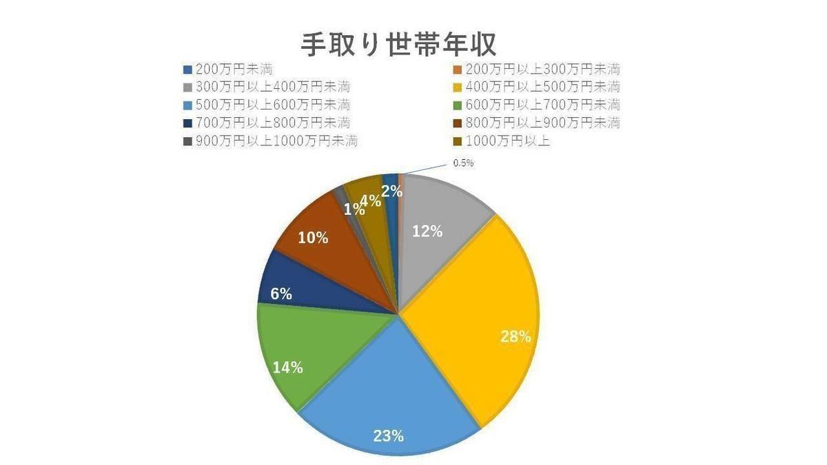 いちばん多かったのは400万~500万円未満の27.7%。次が500~600万円未満の22.7%。600~700万円未満も13.6%いましたが、600万円以上は合計すると35.4%になります。
