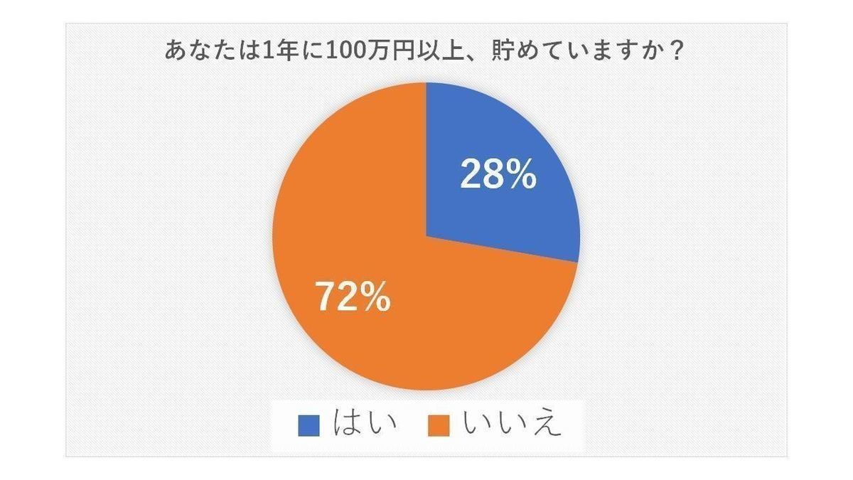 年間100万円以上貯めているか聞いたところ、「はい」と答えたのは27.7%、「いいえ」と答えたのは72.3%でした。