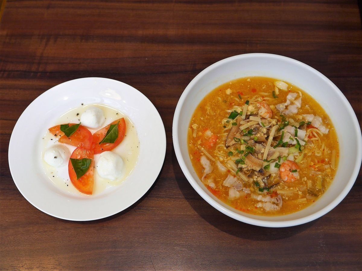 裏ワザ2:酸辣湯麺×水牛モッツァレラのカプレーゼ