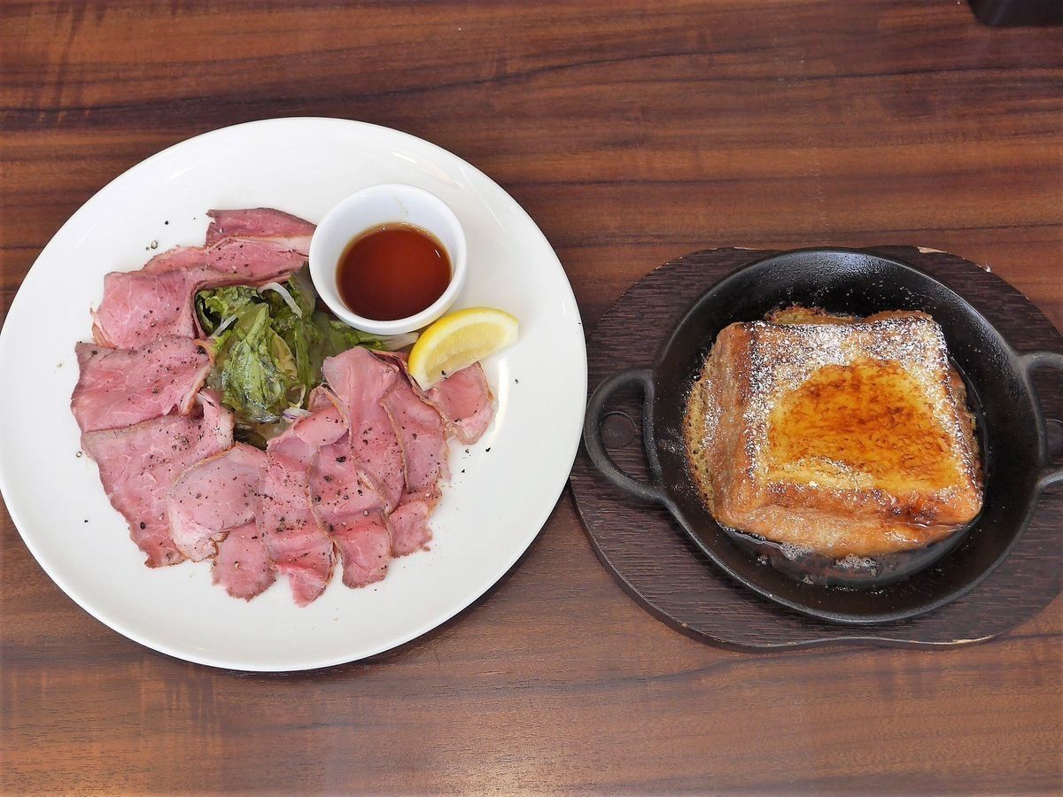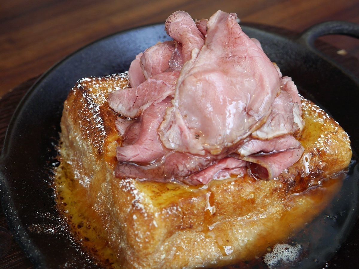 お肉と甘さの合体がどうなるのかちょっと不安な人もいるかもしれませんが、ご安心ください。ローストビーフの旨味とフレンチトーストの甘さは反発することなく見事に溶け合っており、まるで上品なフレンチ料理のような仕上がりになっています。