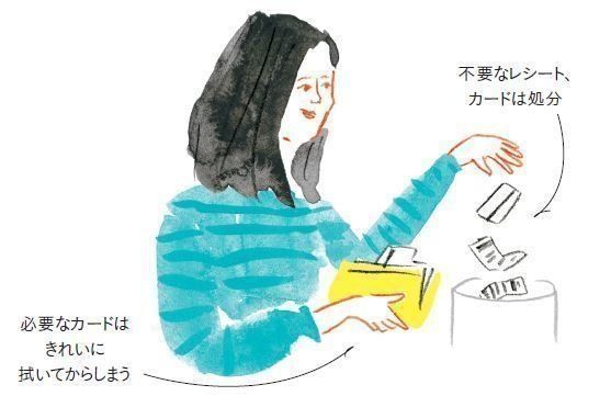 お金はいろいろな人、場所の厄がつきやすく、そのお金を収める財布も同様です。中身を全部出して整理し、厄を落としましょう。カード類は、必要なものは拭いてからしまって。