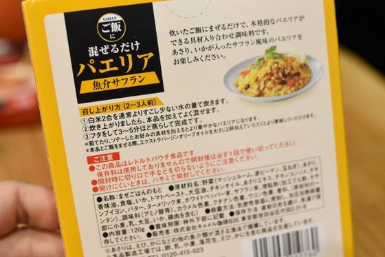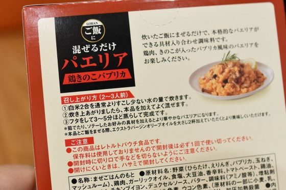 調理方法はとっても簡単。炊き上がった2合分のご飯に、箱の中のレトルト具材とオリーブオイルをかけるだけで、パエリアが完成します。炊き込みタイプではないので、炊飯器に匂いがつく心配がないのもうれしいですね。