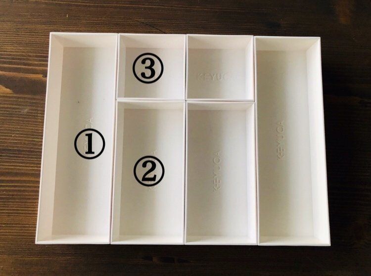 KEYUCAのボックスシリーズは、3種類のサイズを展開。上の写真にあるボックスの大きい順に番号を振ってあります。それぞれの具体的なサイズと価格は、