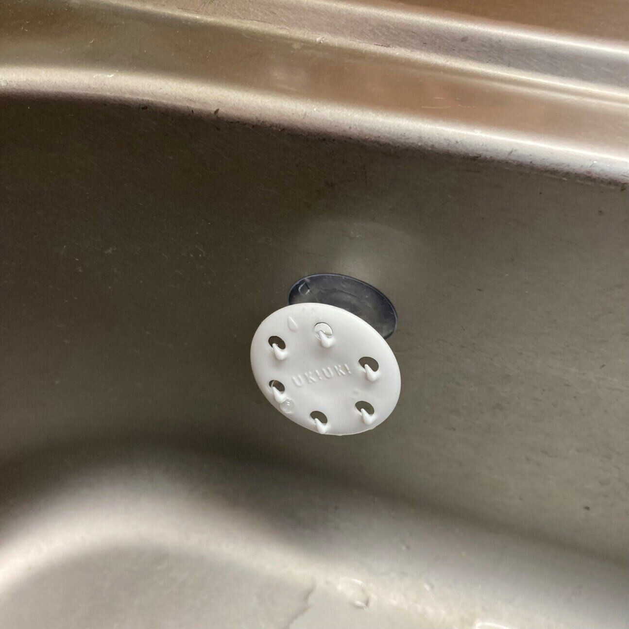 『UK!UK! mini』は小さな吸盤とスポンジホルダーがセットになった商品。スポンジホルダーと吸盤を合体させて、シンクに貼り付けるだけで使えます。