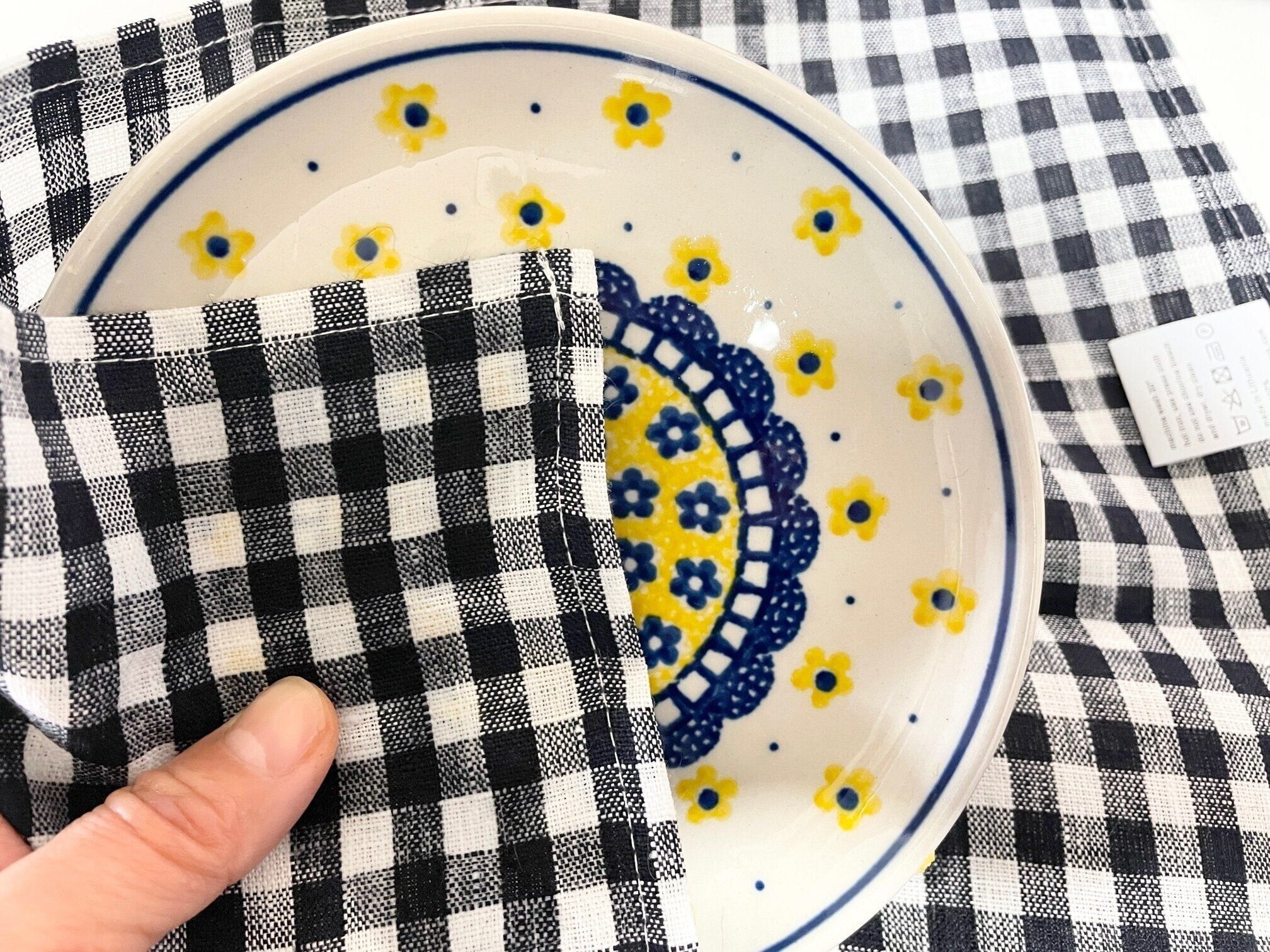 大き目で厚手なため、食器の水気をよく吸ってくれます。吸水シートや水切りカゴよりもオシャレな感じで使えるのもいいですね。