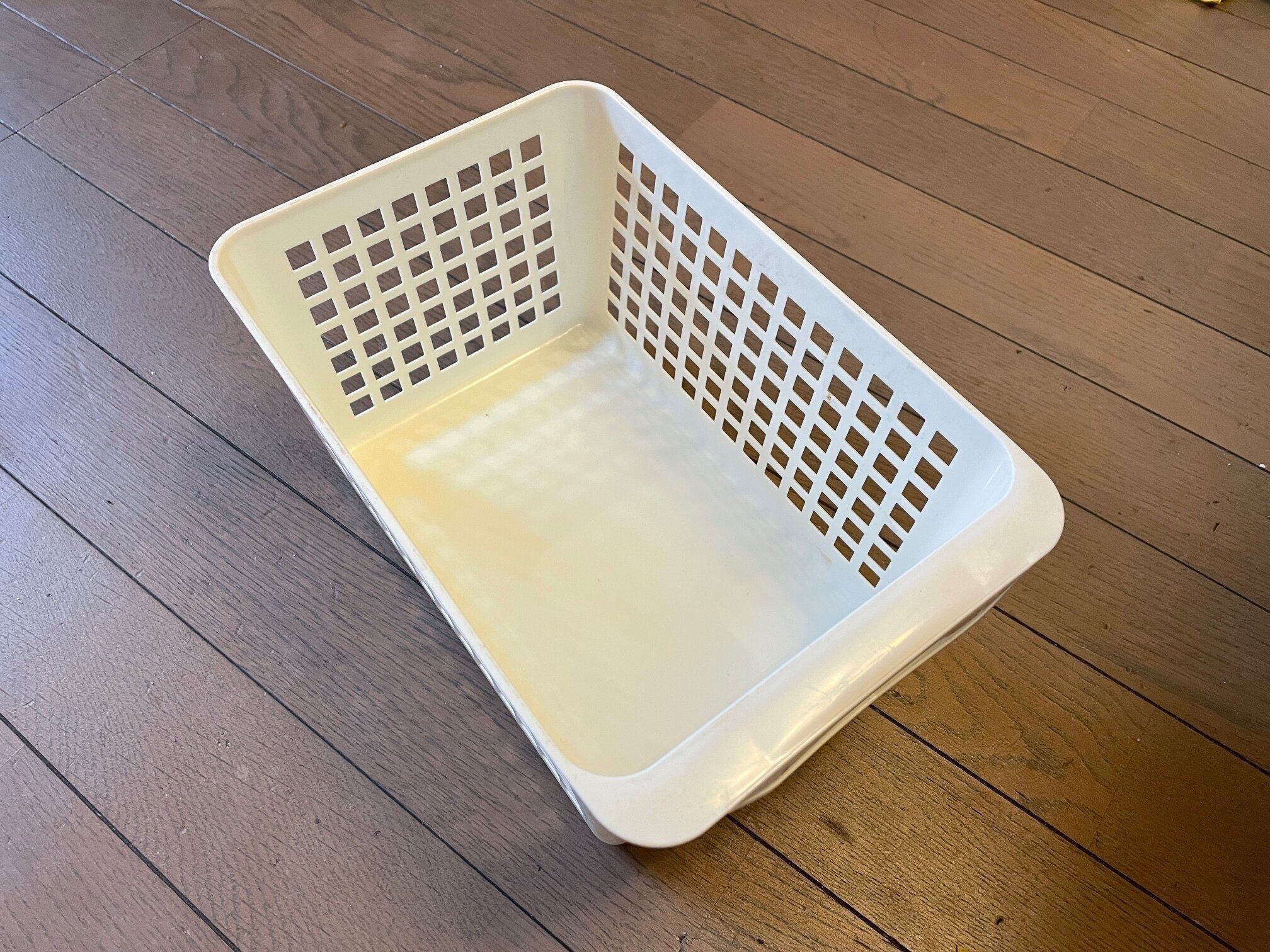 一見どこにでもあるような、いわゆる「100均のプラスチックカゴ」という感じ。