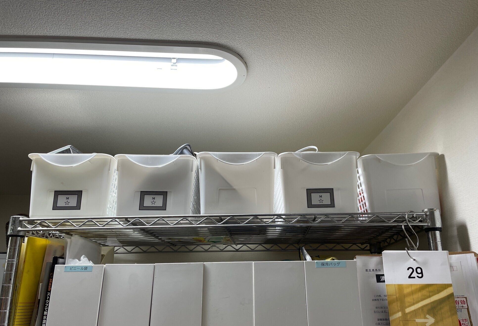 オープン棚に並べてラベルを貼れば、スッキリと統一感が出て100均ぽさは皆無ですよ。