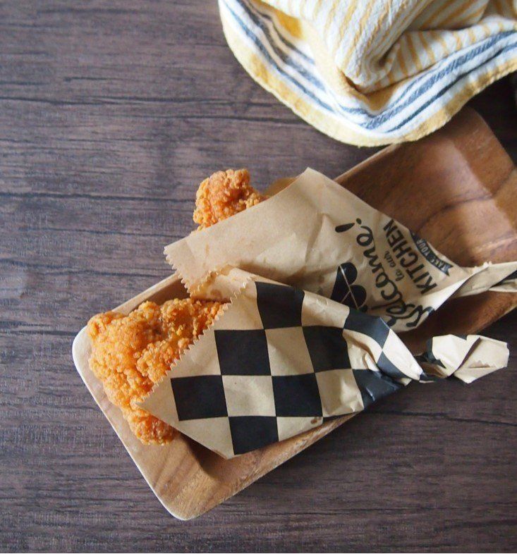 内側がワックス加工になっているので、油分がしみ出しにくい!揚げ物を包むのに最適です!手を汚すことなく揚げ物を食べることができますよ。