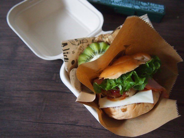 まずは通常使用。ハンバーガーを包んでみました。お弁当にも大活躍!ハンバーガーをバーガーバッグで包むだけで、お店のようにおしゃれですね。