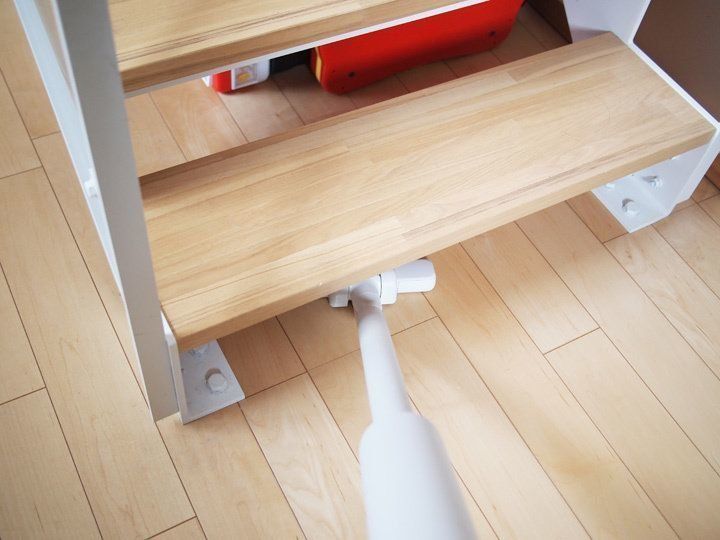 細かいところも非常に入りやすく、上階から下の階に降りてくるときもコードレスなのでとてつもなく楽チン。そして軽い!ふだんのちょっとした掃除ならばこれ1台でサクっと終わらせることができます。