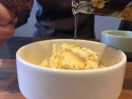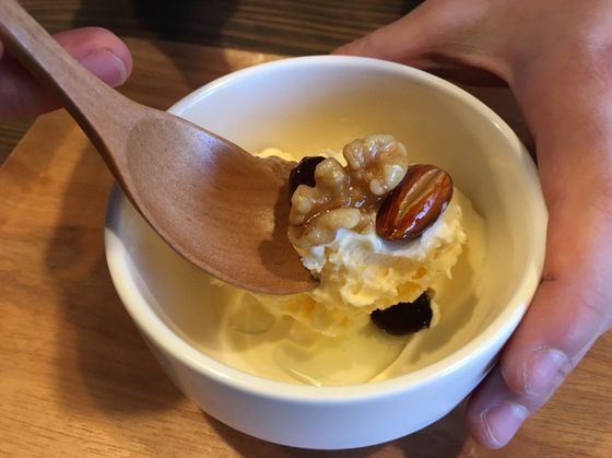できあがったハーバリウムは、アイスクリームやチーズケーキにかけるのもおすすめです。もちろん、チーズにかけても◎。