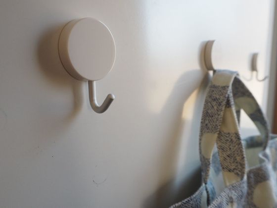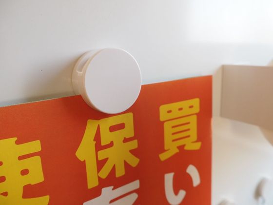 冷蔵庫にあると便利なのがこの掛けるタイプ。お弁当を入れるバックやエコバックなどを掛けておくのに便利です。マグネット付クリップと同じく丸型・白色なので、一緒に並べても統一感があります。