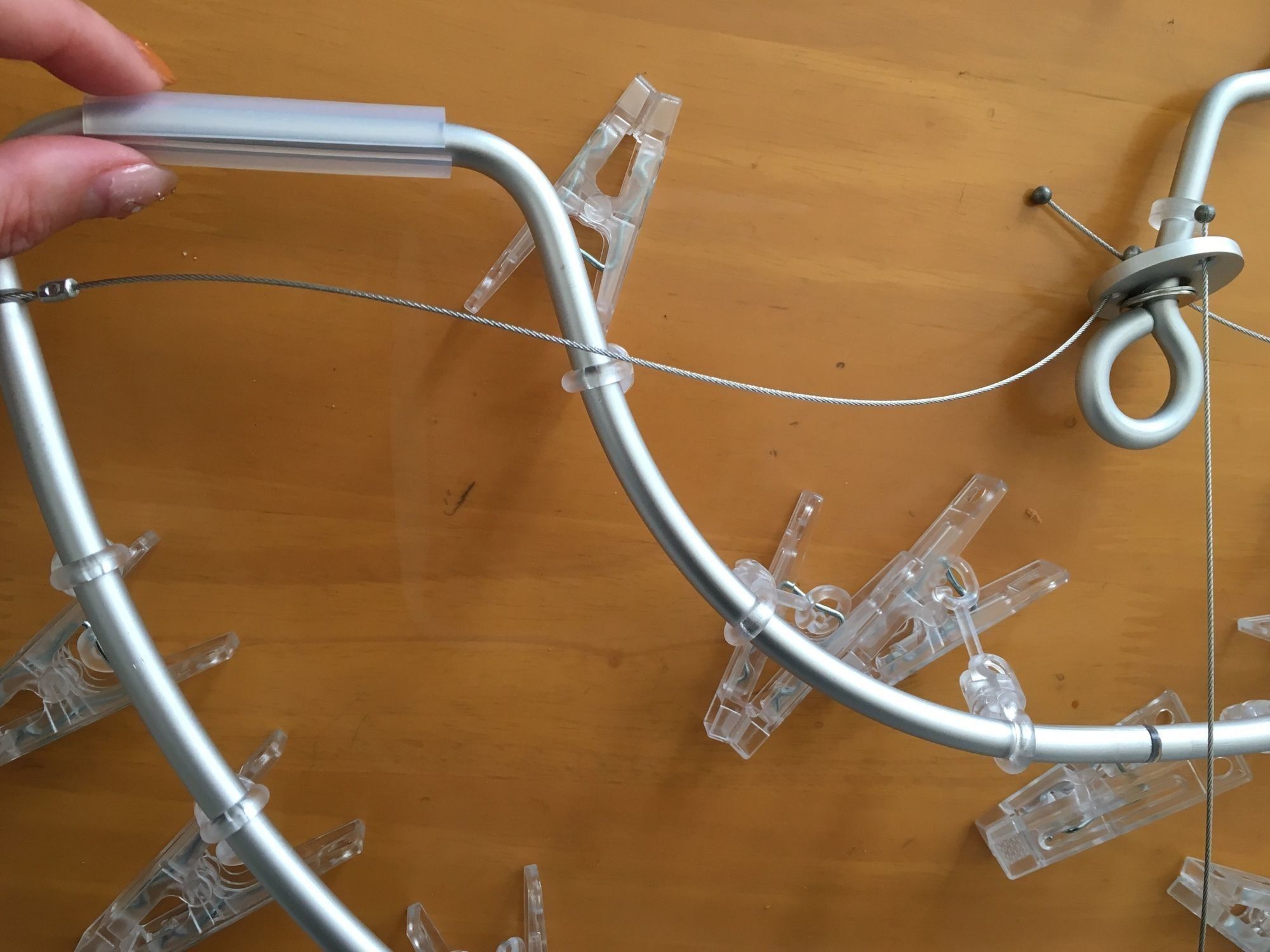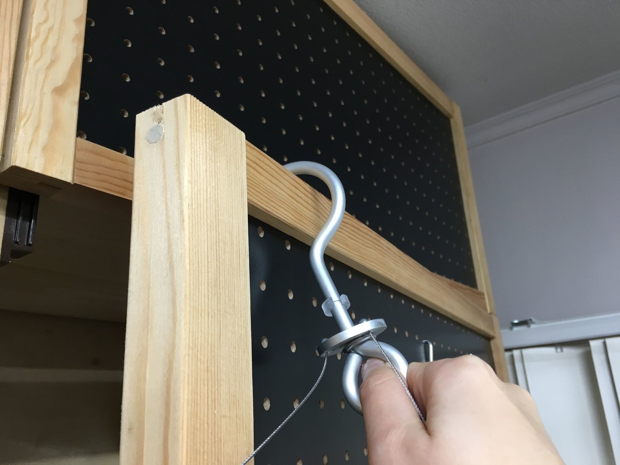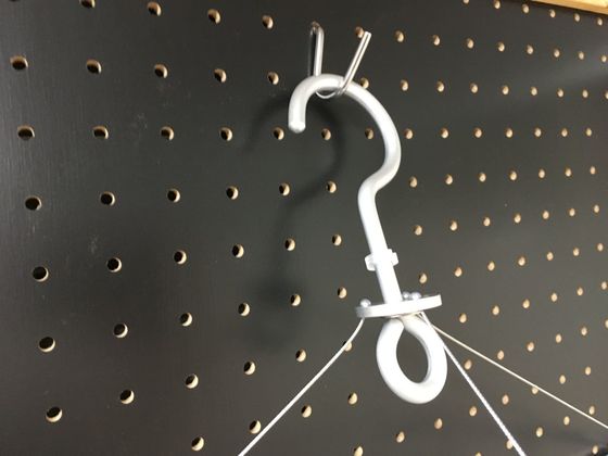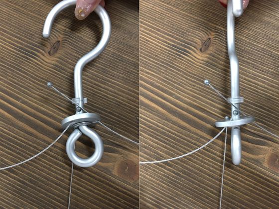 フック部分はクルクル回るので、ドアなどにちょっとかけたいときにもOK。向きが簡単に変えられるのはいいですよね。ちなみに細いワイヤーは程よくハリのあるステンレスです。