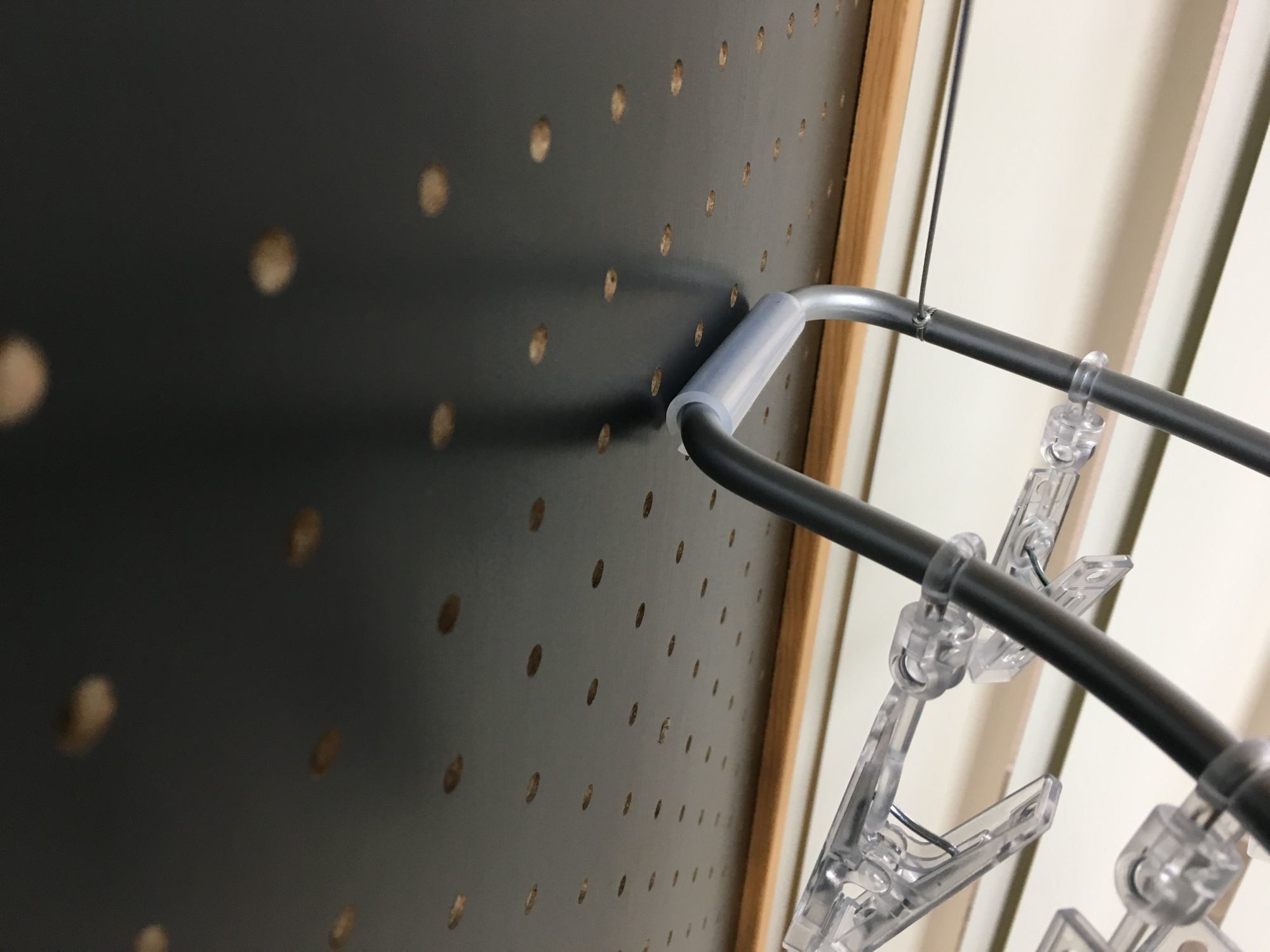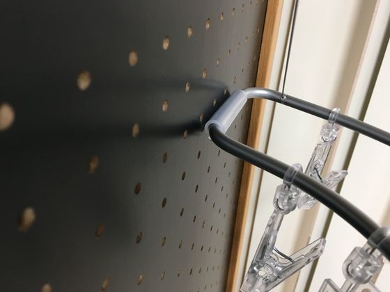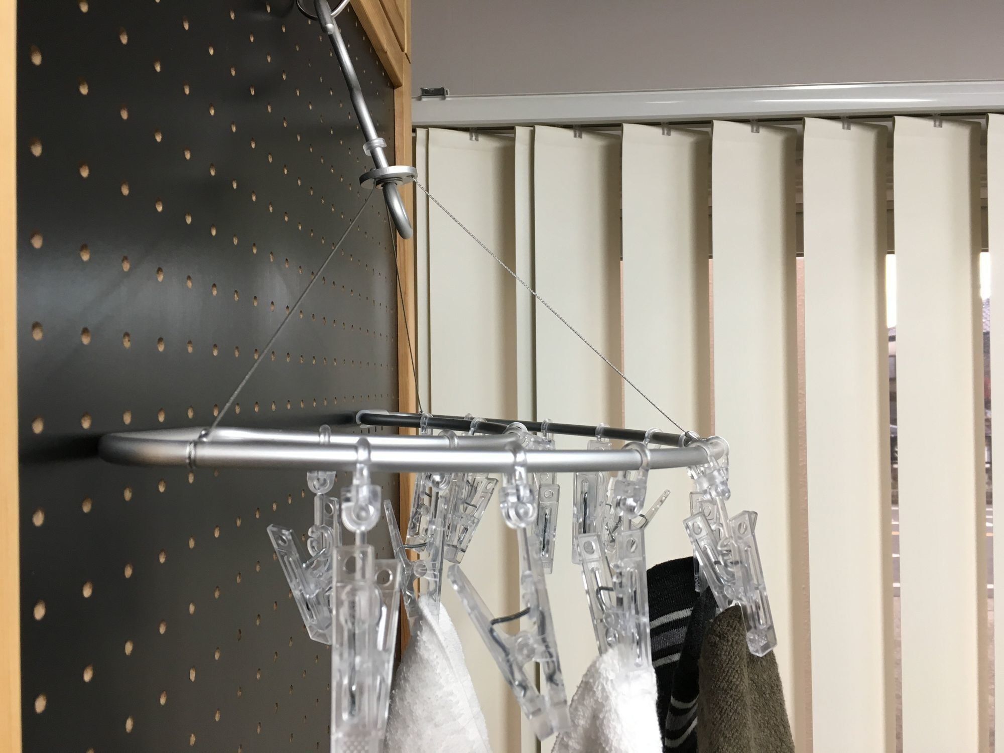 早速、壁面フックにかけて使ってみました。壁と垂直になっているから、洗濯物も斜めにならずに干すときも外すときも使いやすい!