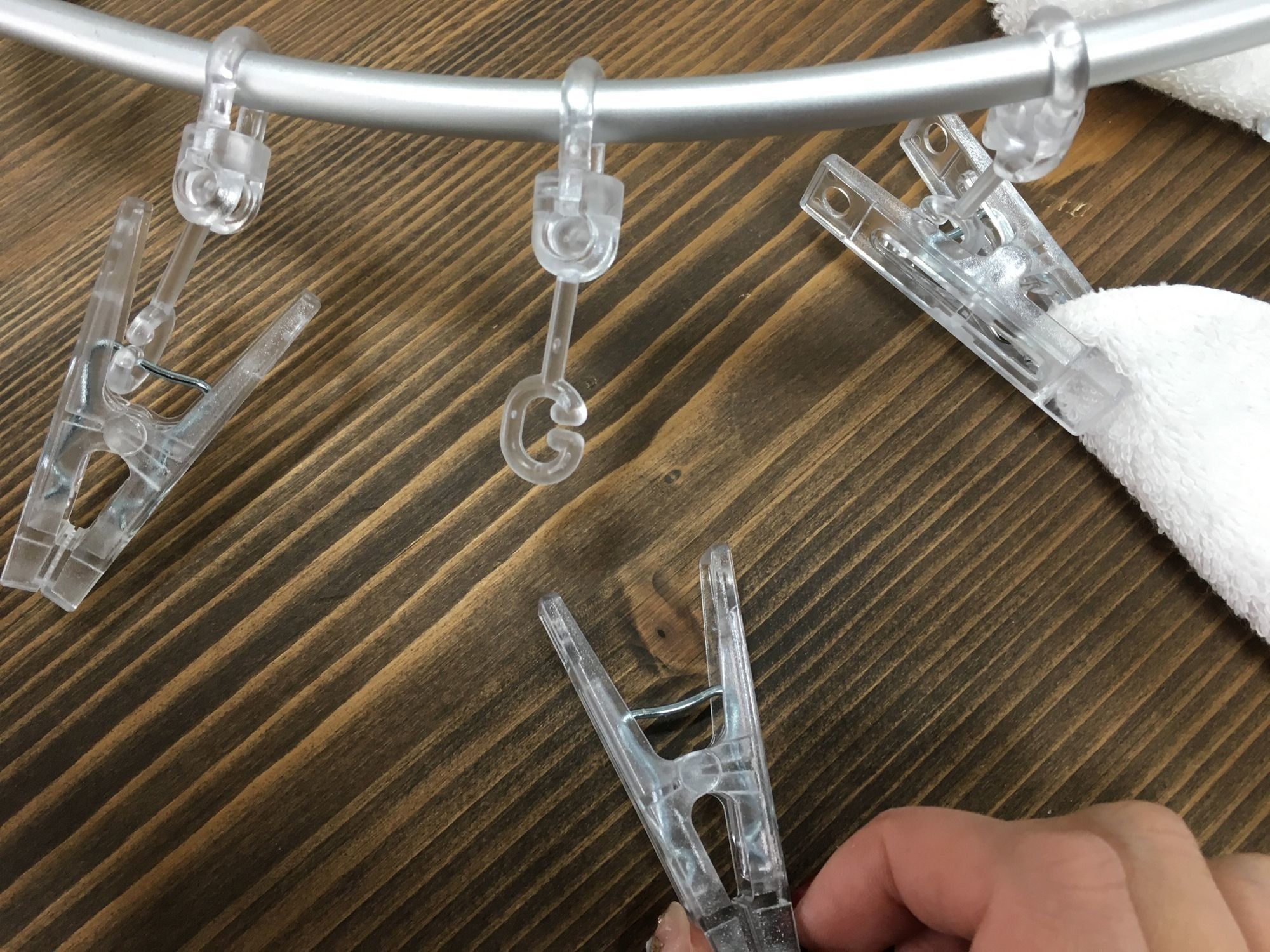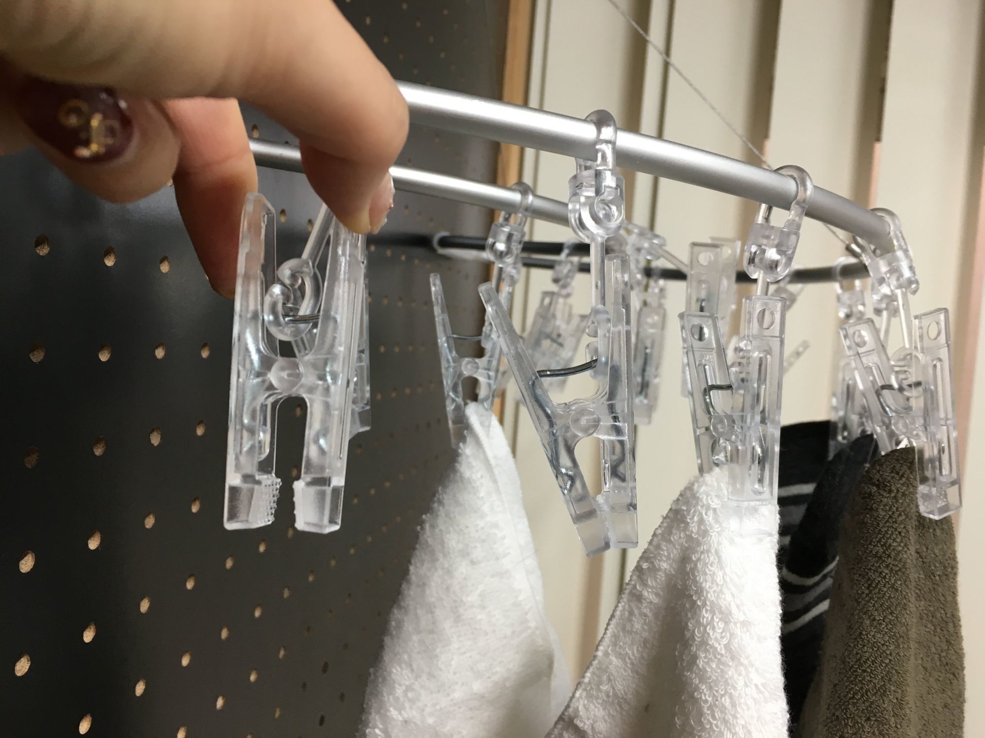 ついているピンチはプラスチックのなかでも強度の高いポリカーボネート製の物が16個。とはいえ、それ程固くないので挟みやすいです。