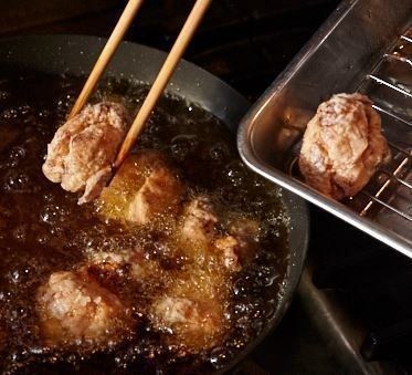 「肉が小さいと火が通り過ぎ、さめるにつれてパサパサになります。また、しっかり火を通すことは大切ですが、ただ長く揚げればいいというわけではない。一度めは低いの温度で揚げ、少しやすませたら、温度を上げて二度揚げ。こうすると、外はカリッ、中はジューシーになるんです」(笠原さん)。