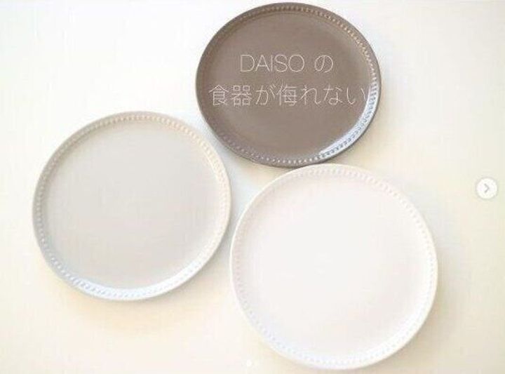 ダイソーで人気のこの丸皿は、品薄になることもしばしば。見つけたら即ゲットしたい商品です。白・黒・グレーのシンプルカラーと、ぽってりとしたドットの縁どりがおしゃれです。