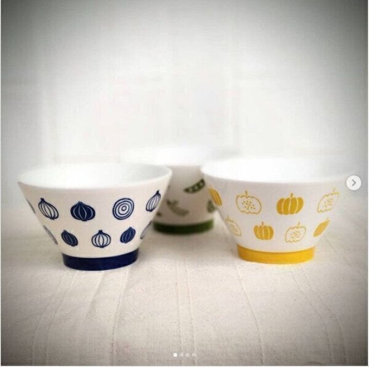 こちらのお茶碗はレトロ感漂うカラーと野菜のイラストで一目惚れする人続出のアイテムです。並べるだけで楽しい雰囲気になり、食卓が華やかになること間違いなしです。